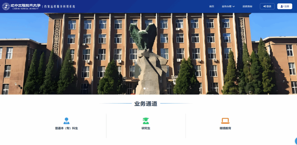 PC端:访问辽宁工程技术大学“档案远程服务利用系统”,https://dafw.lntu.edu.cn/。